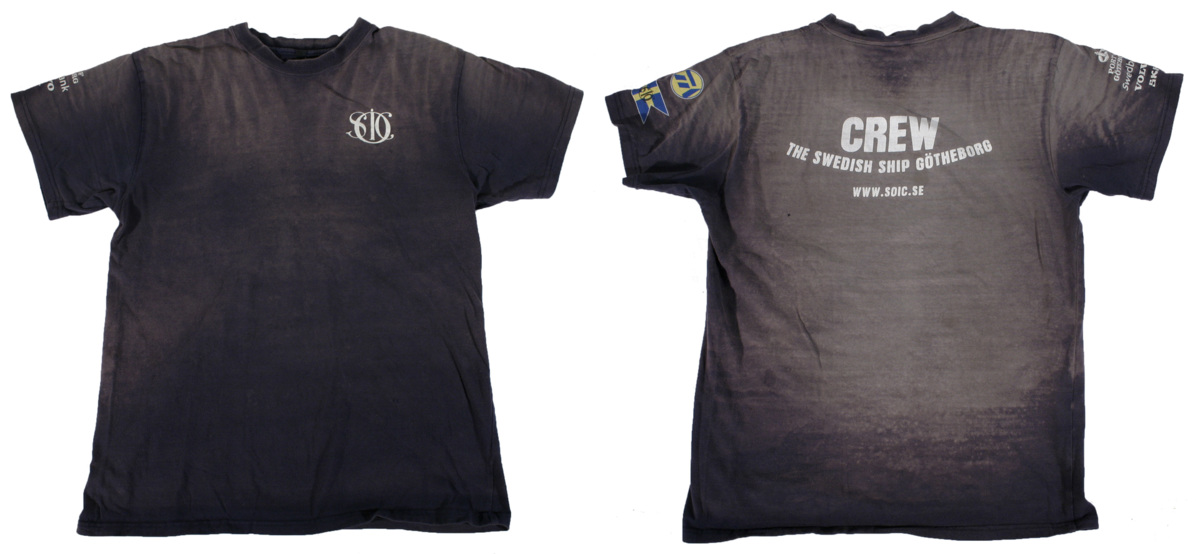 ”Den var mig trogen under de två månader jag tillbringade i Shanghai påmönstrad på Götheborg, samt under varvstid på ön Tao Hua Dao och seglingen därifrån till Hong Kong och Singapore, alltså etapp 7. Den har därmed fått uppleva allehanda äventyr med middagar tillsammans med prominenta kinesiska politiker, bejublad körsång vid 'Night of Creativity and Golden Autumn Get Together' och saltstänket från sydkinesiska sjön. Därtill följde den med mig när jag på egen hand reste runt i Australien och bl.a. under stekande sol plockade meloner på enorma melonfält. Man kan väl säga att det var under Australiens stekande sol som mycket av dess patina kom till. Jag skulle därmed vilja säga att det är en mycket berest t-shirt som efter dess produktion och första vistelse i Shanghai hunnit med att besöka Hong Kong, Singapore, Malaysia, Thailand, Australien och Nya Zeeland innan den slutligen fann sin plats på Sjöfartsmuseet i Göteborg!” (Tobias Gren, mars 2008)