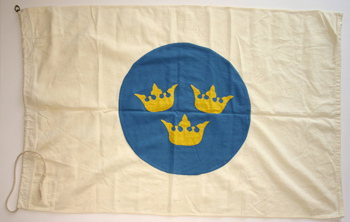 SAL-flagga som förvarats tillsammans med en svensk flagga och kopior på fartygsregistreringshandlingar i en läderpärm.