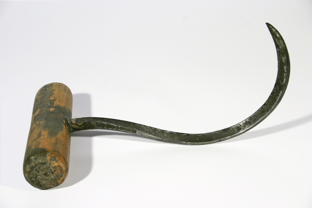Den här typen av grips, där en större krok är placerad på mitten av ett trähandtag är en av de vanligast förkommande. Användes av sjömannen, hamn- och varvsarbetaren Gustav Isakssons.