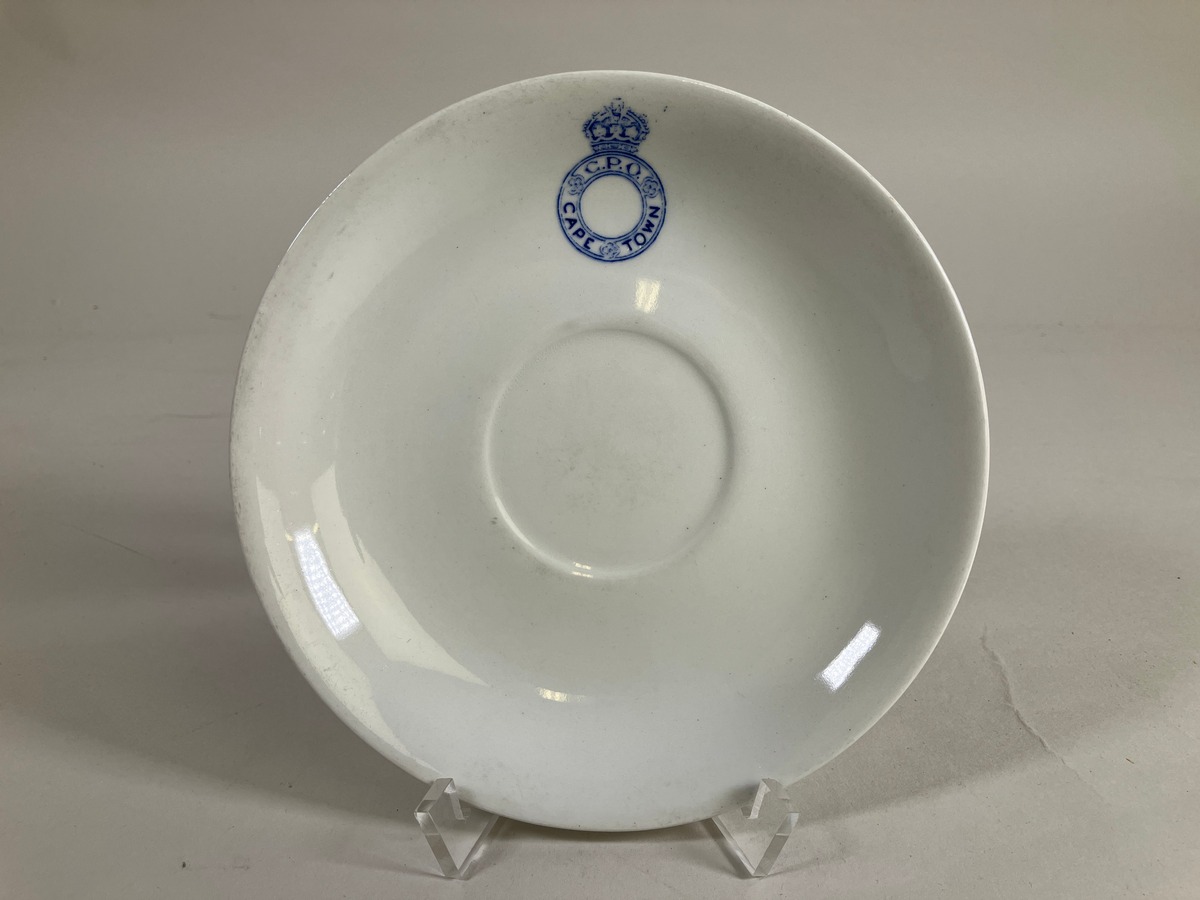 Gå tillbaka till sökLägg till i Min samlingKopiera länkSkriv utKaffekopp m fatAktörerYngve Eiserman (1873 - 1955), Förvärvat frånKategoriserveringsutrustning (Inredning, husgeråd) dryckeskärl (Inredning, husgeråd) Övrig fartygsutrusning (Fartygsutrustning)InventarienummerSMG10551UtställdInte utställd på museetBeskrivningKaffekopp med fat som tillhört General Post Office Cape Town. Dekor med blått märke Krona och initial G.P.O Tillv. P Bentley & co Bristol England