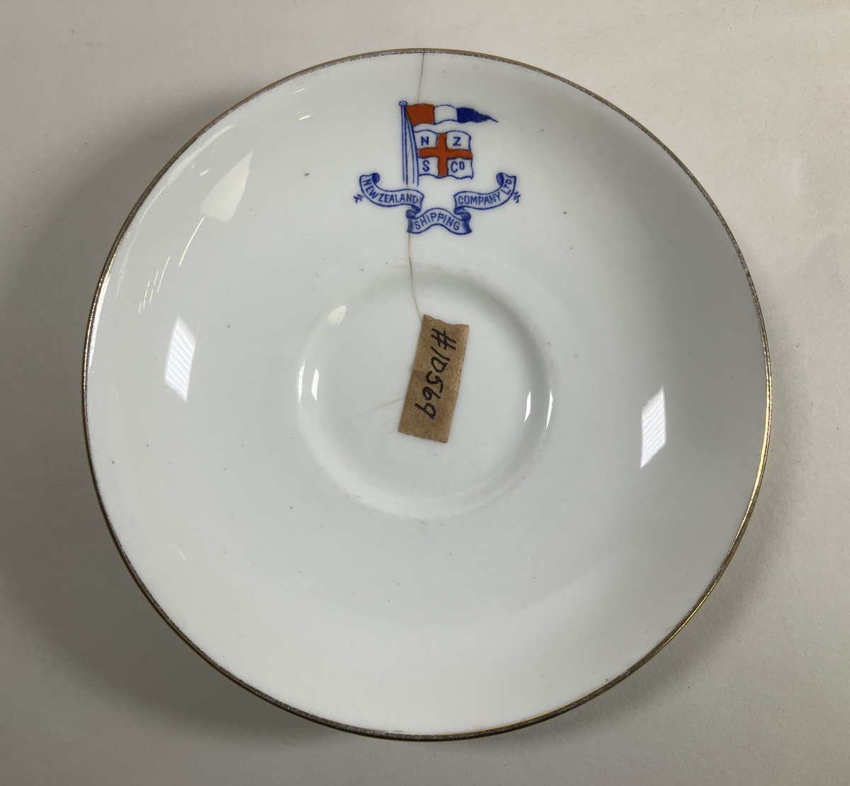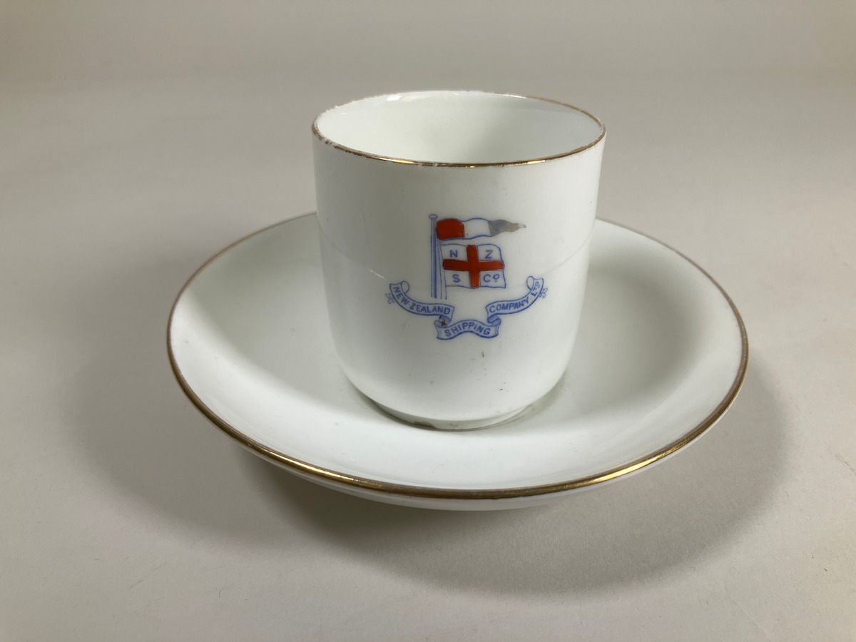 Kaffekopp med fat (Mocka) som tillhört New Lealand Shipping Co, m/s HOROROLA