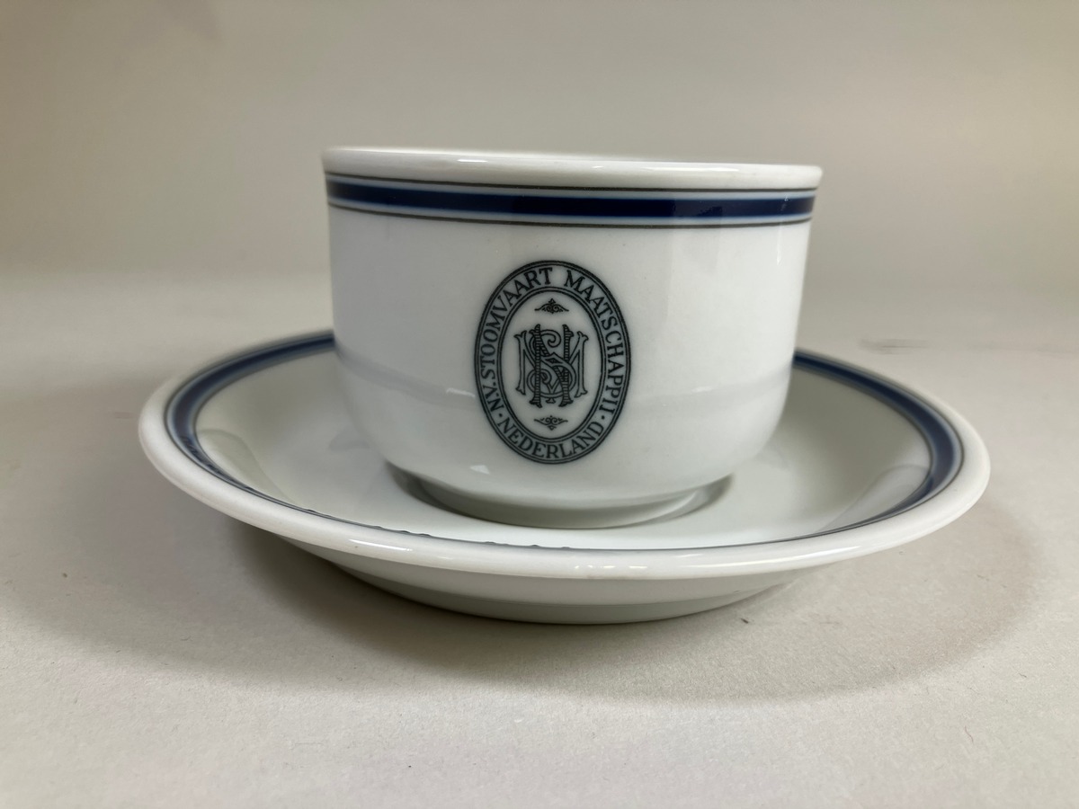 Kaffekopp med fat (mocka) som tillhört N.V Stoomvaart Maatschappii, Nederländerna.