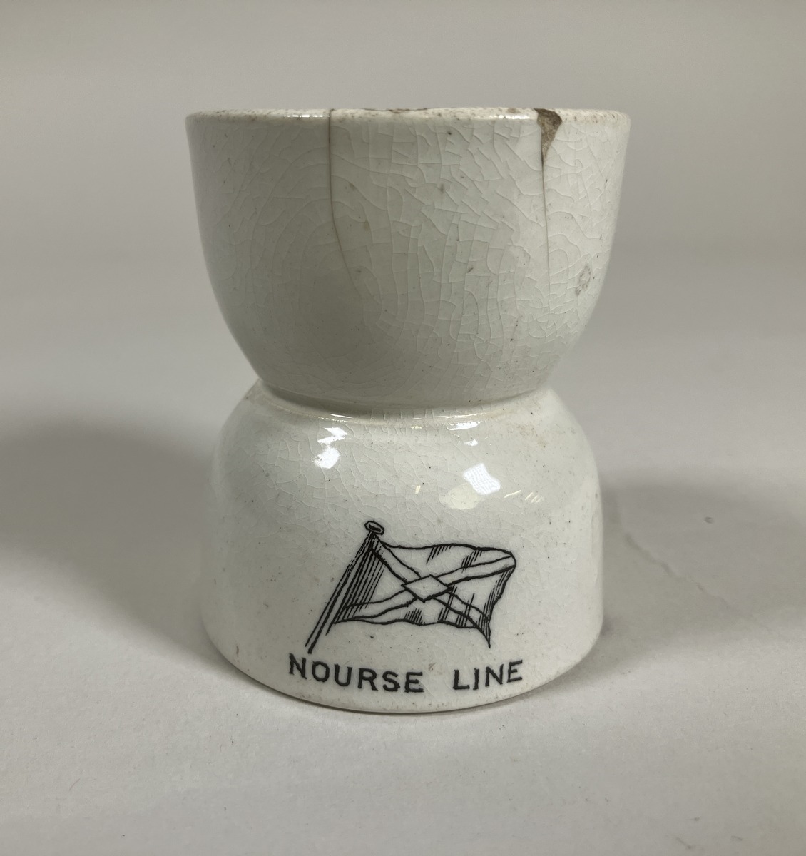 Gå tillbaka till sökLägg till i Min samlingKopiera länkSkriv utÄggkoppAktörerYngve Eiserman (1873 - 1955), Förvärvat frånKategoriserveringskärl (Inredning, husgeråd)InventarienummerSMG10593UtställdInte utställd på museetBeskrivningÄggkopp som tillhört Nourse Line London. Märlt med bolagsflagg i svart samt NOURSE LINE