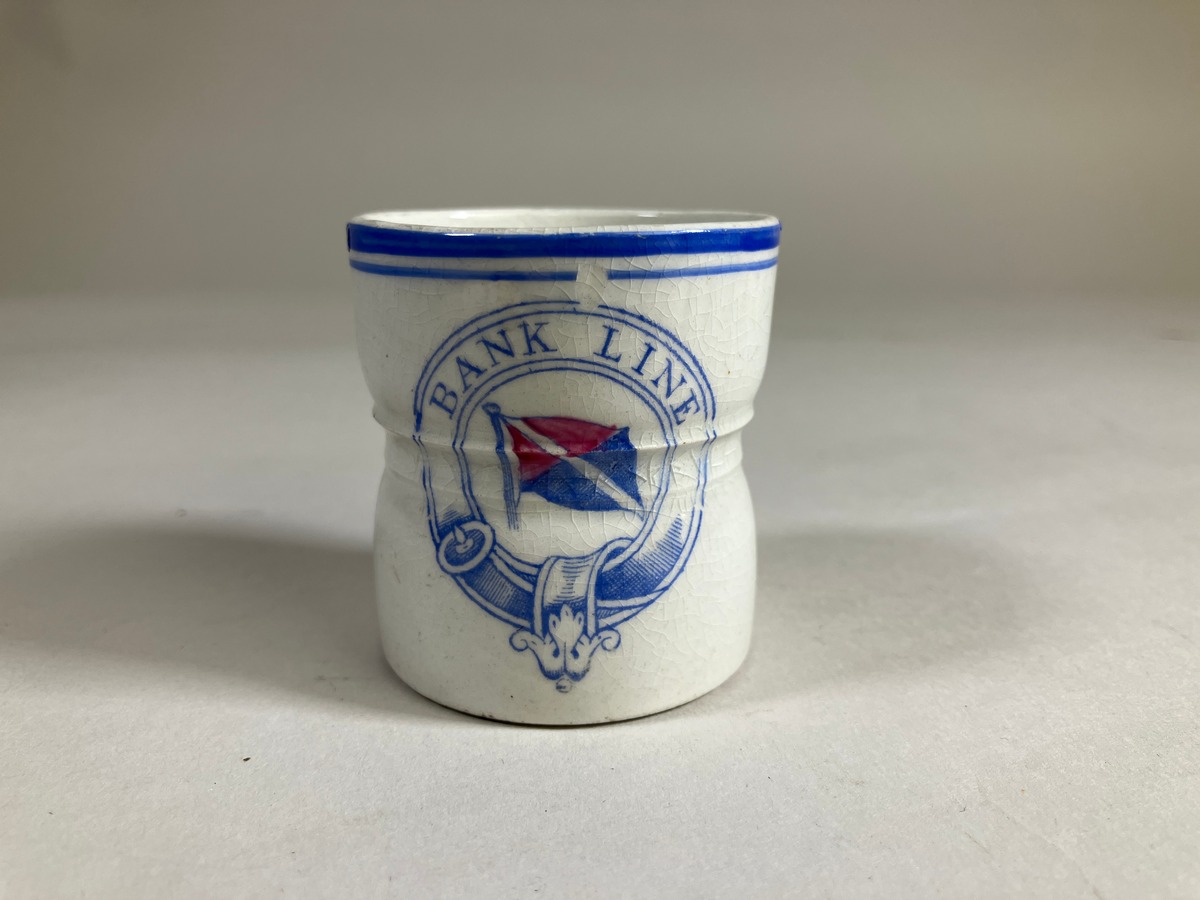 Gå tillbaka till sökLägg till i Min samlingKopiera länkSkriv utÄggkoppAktörerYngve Eiserman (1873 - 1955), Förvärvat frånKategoriserveringsutrustning (Inredning, husgeråd) Övrig fartygsutrusning (Fartygsutrustning)Dimensioner10,00 cm Diameter 4,50 cmInventarienummerSMG10606UtställdInte utställd på museetBeskrivningÄggkopp som tillhört Bank Line, Glasgow. Blå kantdekor och band med bolagsflagg i blått och rött.