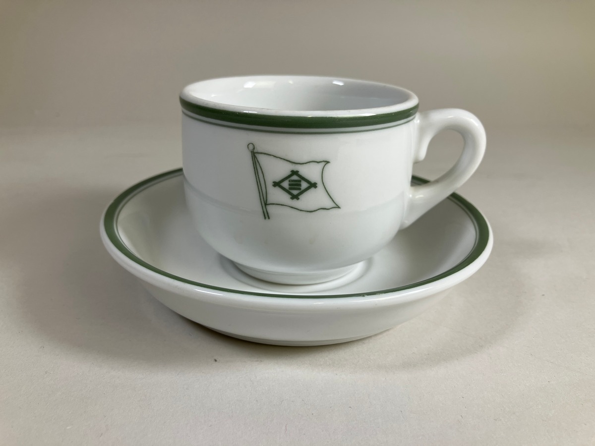 Gå tillbaka till sökLägg till i Min samlingKopiera länkSkriv utKaffekopp med fatAktörerYngve Eiserman (1873 - 1955), Förvärvat frånKategoriserveringsutrustning (Inredning, husgeråd) dryckeskärl (Inredning, husgeråd) Övrig fartygsutrusning (Fartygsutrustning)InventarienummerSMG10624UtställdInte utställd på museetBeskrivningKaffekopp med fat som tillhört Mitsui Bussan K. Ltd. Grön kantlinje samt bolagsflagg. Tillverkad: Toyotokikassha, Japan