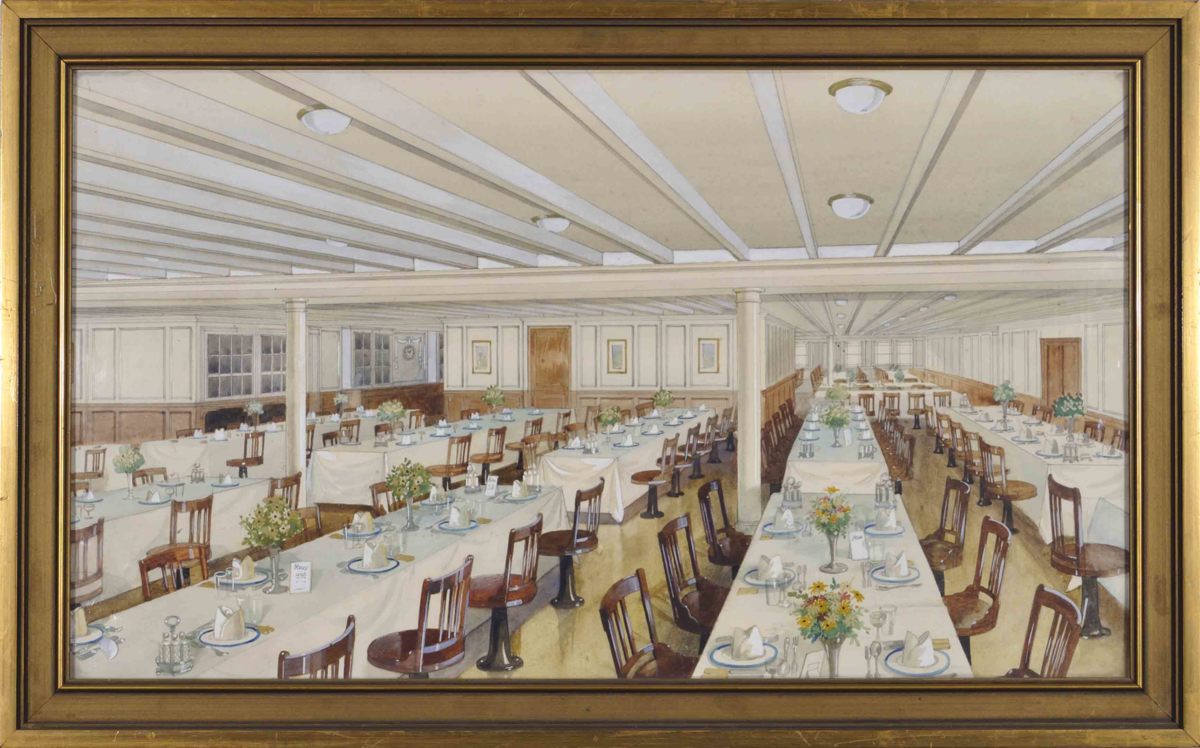 Akvarellmålning, matsal i 3e klass