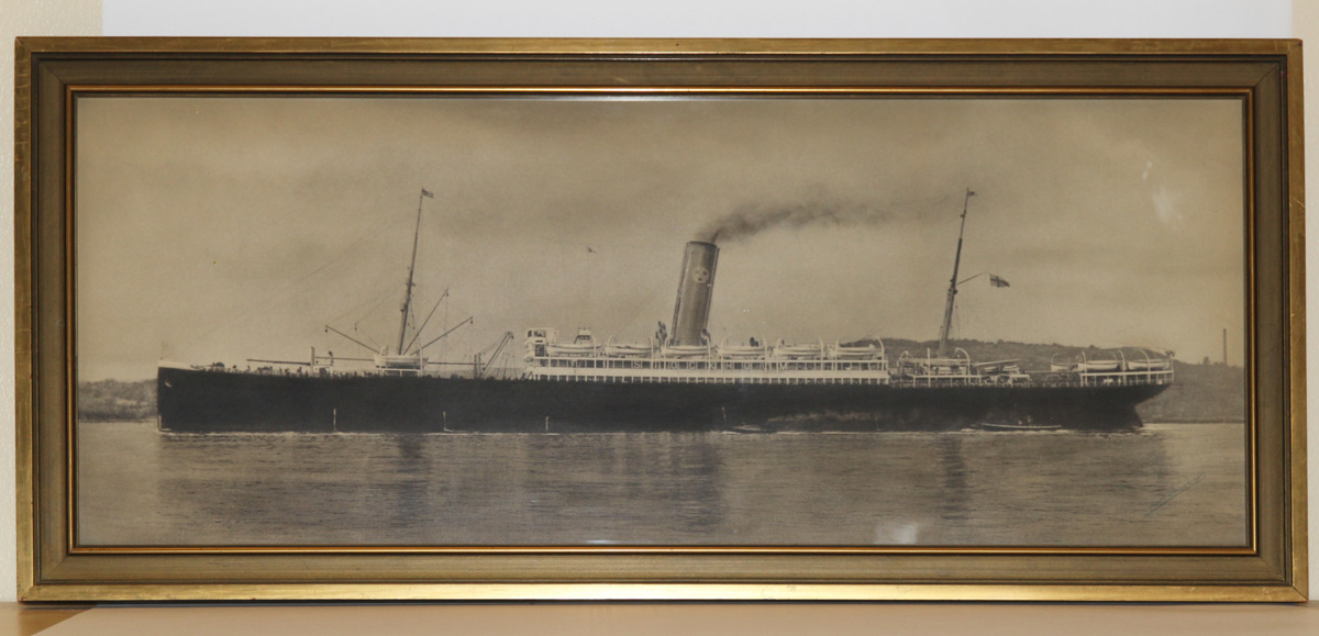 Inramat fotografi föreställande Svenska Amerikaliniens ångfartyg STOCKHOLM