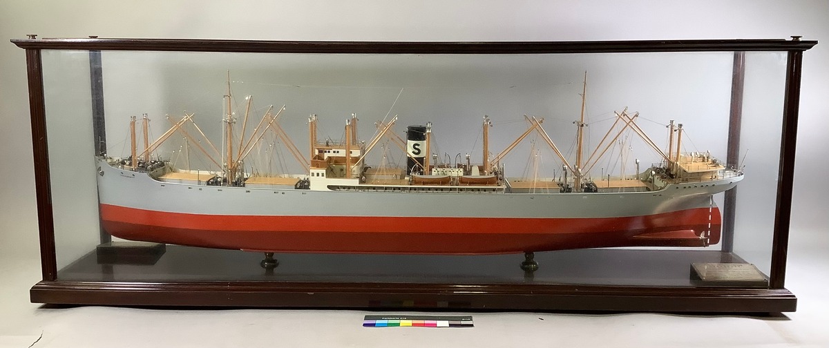 Modell av SVEADROTT byggd 1929 vid Kockums. Hon såldes 1937 till norsk redare och döptes om till EMMA BAKKE. Deltog i flera konvojer under kriget.