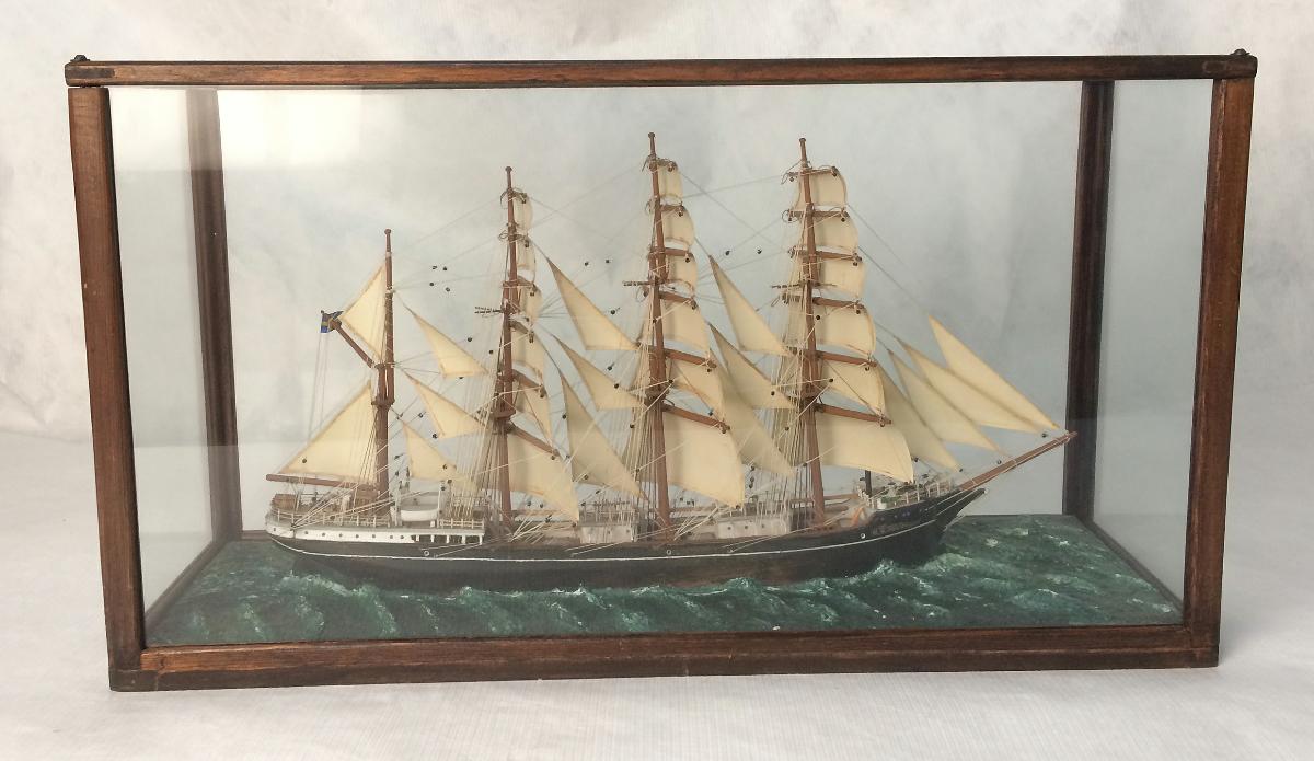 Gå tillbaka till sökLägg till i Min samlingKopiera länkSkriv utFartygsmodellC B PEDERSEN, 1891, skolskeppAktörerElof Bernhardson, Modellbyggare Elof Bernhardson, Förvärvat frånKategorifullmodell (Modell) spegelmodell (Modell) vattenlinjemodell (Modell) segelfartyg (Fartygstyp)FartygC B PEDERSEN, 1891, skolskeppFartygstypfyrmastad barkGeografiGöteborg (Europa, Sverige, Västergötland, Västra Götalands, Göteborg)DimensionerGrundmått (L,B,H): med monter 45,00 x 15,00 x 25,00 cmInventarienummerSMG12169UtställdInte utställd på museet