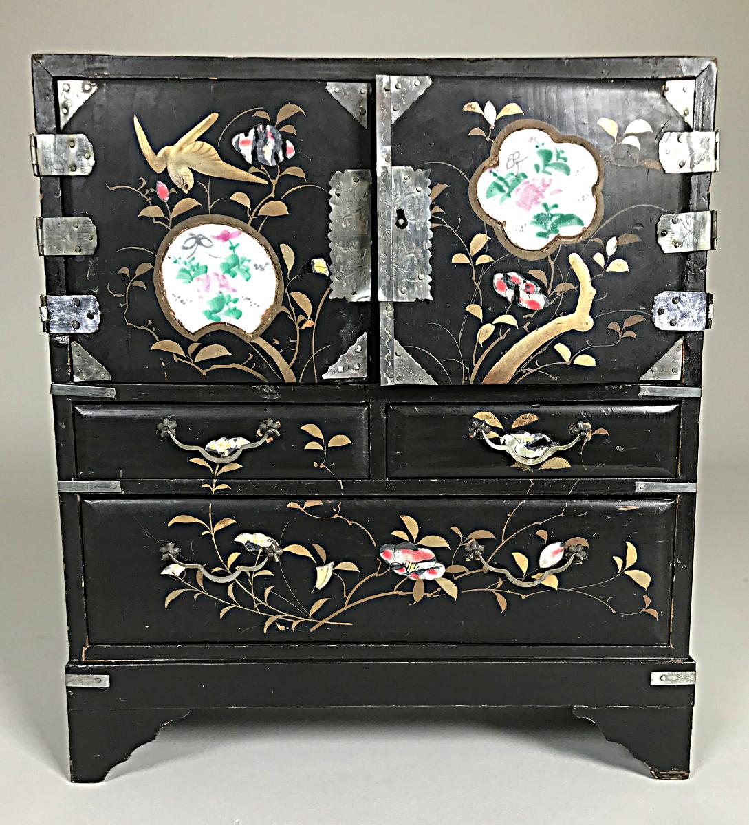 Skåpet är utsmyckat med målningar och inläggningar. Har tillhört sjöman Anton Abrahamsson.
