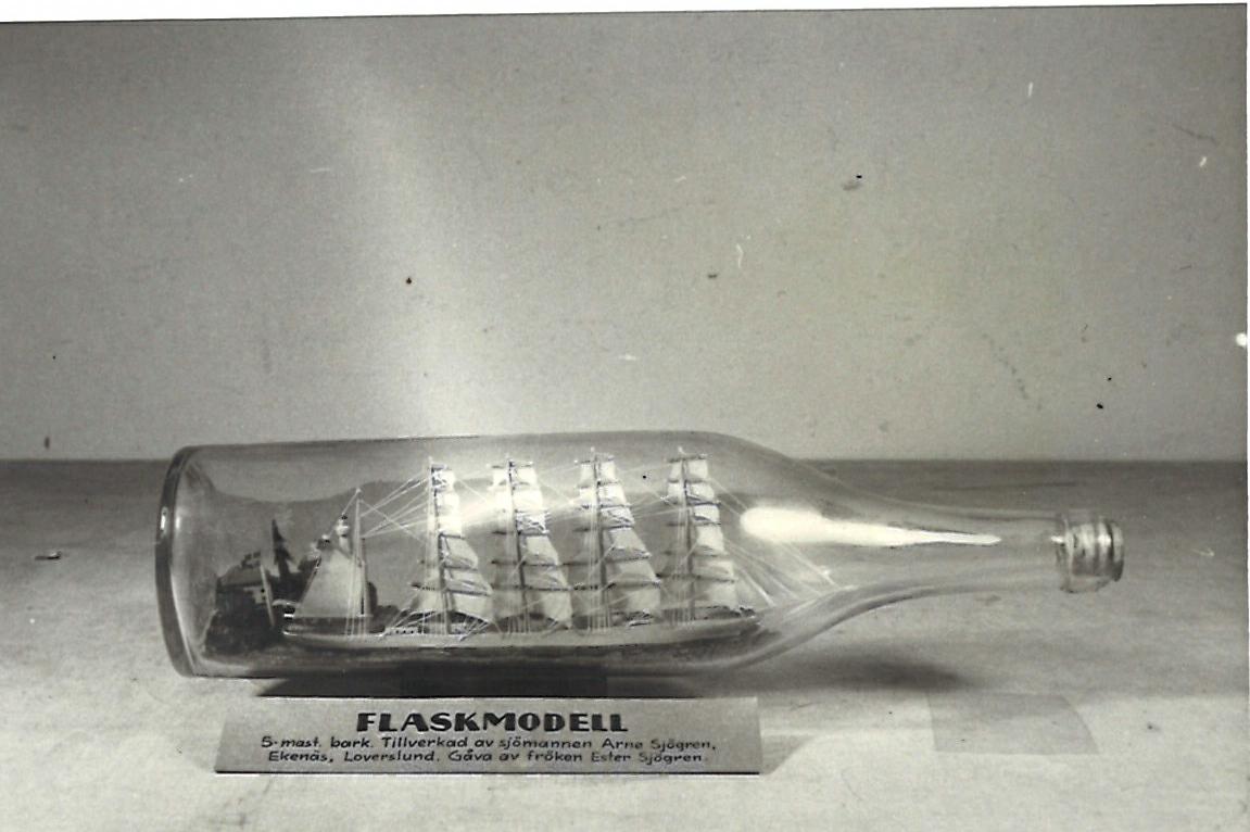 Gå tillbaka till sökLägg till i Min samlingKopiera länkSkriv utFlaskskepp föreställande en femmastad barkAktörerEster Linnea Sjögren (1913 - 1994), Förvärvat från Arne Lennart Sjögren (1916 - 1944), TillverkareKategoriflaskskepp (Modell, flaskmodell)Fartygstypfemmastad barkDimensionerGrundmått (L,B,H) 33,00 x 8,50 cmInventarienummerSMG16760UtställdInte utställd på museet