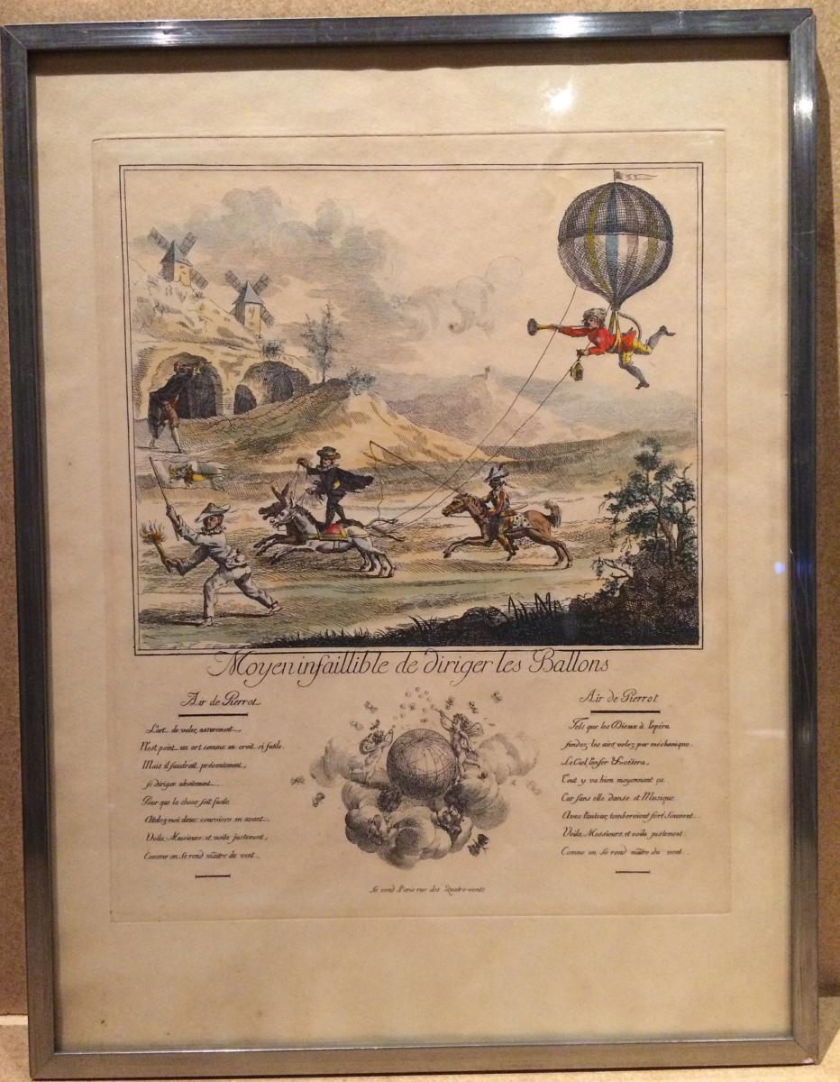 Skämtteckning visande ett ofelbart sätt att kunna styra en luftballong jämte tillhörande narrvisa.