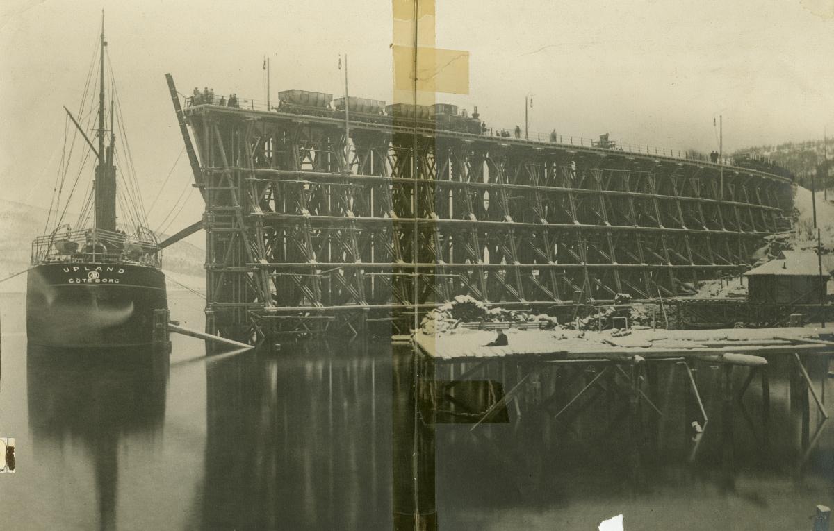 Ångfartyget UPLAND intagande första malmlasten som skeppades från Narviks hamn 1903.