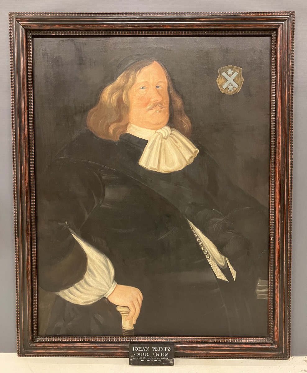 Porträtt av Johan Printz iklädd svart klädsel, vita ärmar och krås. På huvudet svart kalott och brunt hår. Tavlan är kopierad år 1937 av Edith Fischerström, inför jubileet av kolonin Nya Sverige. Originalet hänger i Bottnaryds kyrka. Johan Printz var prästson från Bottnaryd och han tros också ligga begravd under kyrkans södra korsarm.