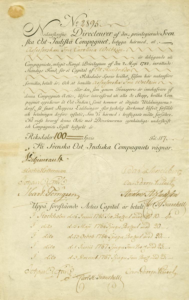 Aktiebrev från 1780-talet.