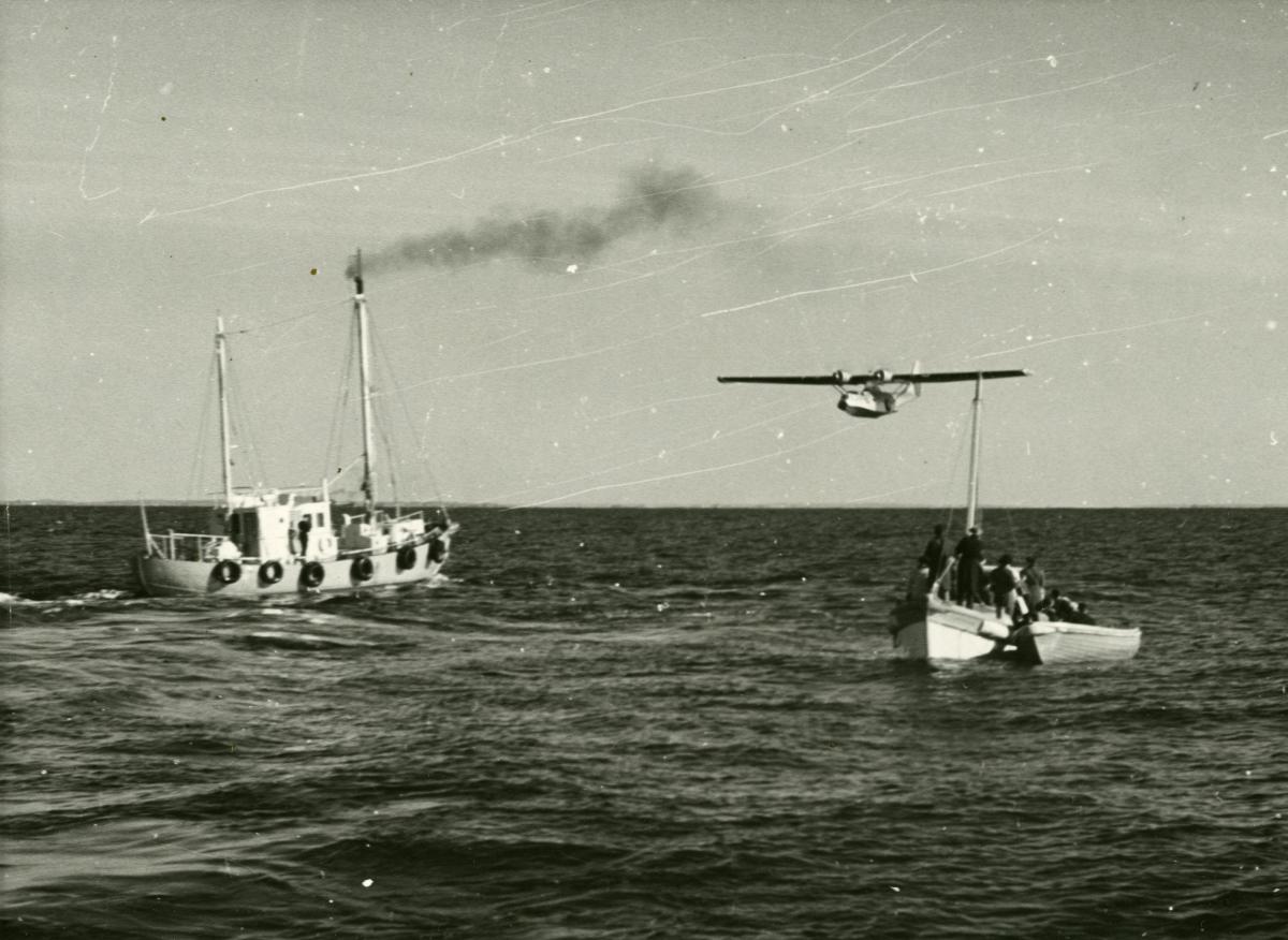 Fotografi på fartyg, båtar och flygplan från sjöräddningens övningar