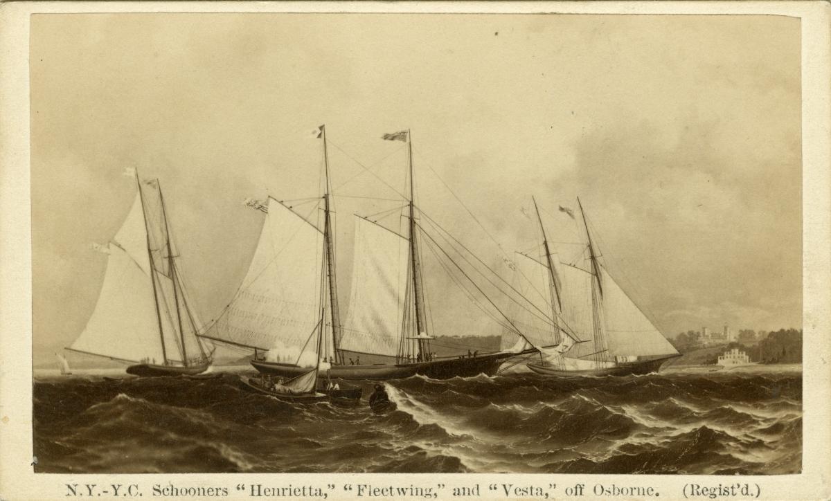 Fotografi av skonare HENRIETTA, FLEETWING och VESTA vid Osborne.