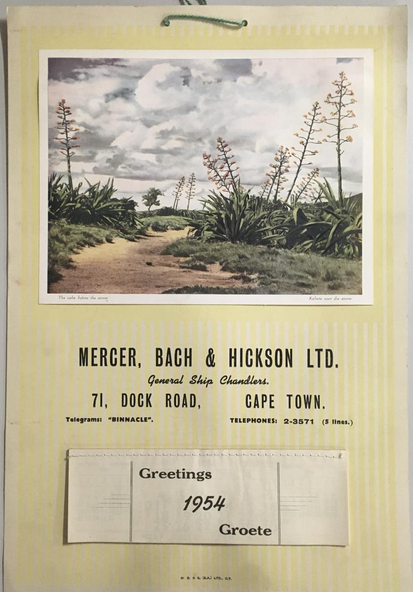 Gå tillbaka till sökLägg till i Min samlingKopiera länkSkriv utAlmanackor för 1954AktörerYngve Eiserman (1873 - 1955), Förvärvat frånKategorialmanacka (Dokument, handlingar)Datering1954InventarienummerSMG22712UtställdInte utställd på museetBeskrivningMercer, Bach & Hickson Ltd. 71 Dock Road, Cape Town.