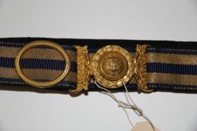 Uniformen består av amiralsfrack, guldgaloner, byxor, hatt, epåletter sabelkoppel och svensksundskärp. Epåtterna har tillhört amiral Wilhelm Dyrssen men överläts genom testamente till amiral C.l. Lindström.