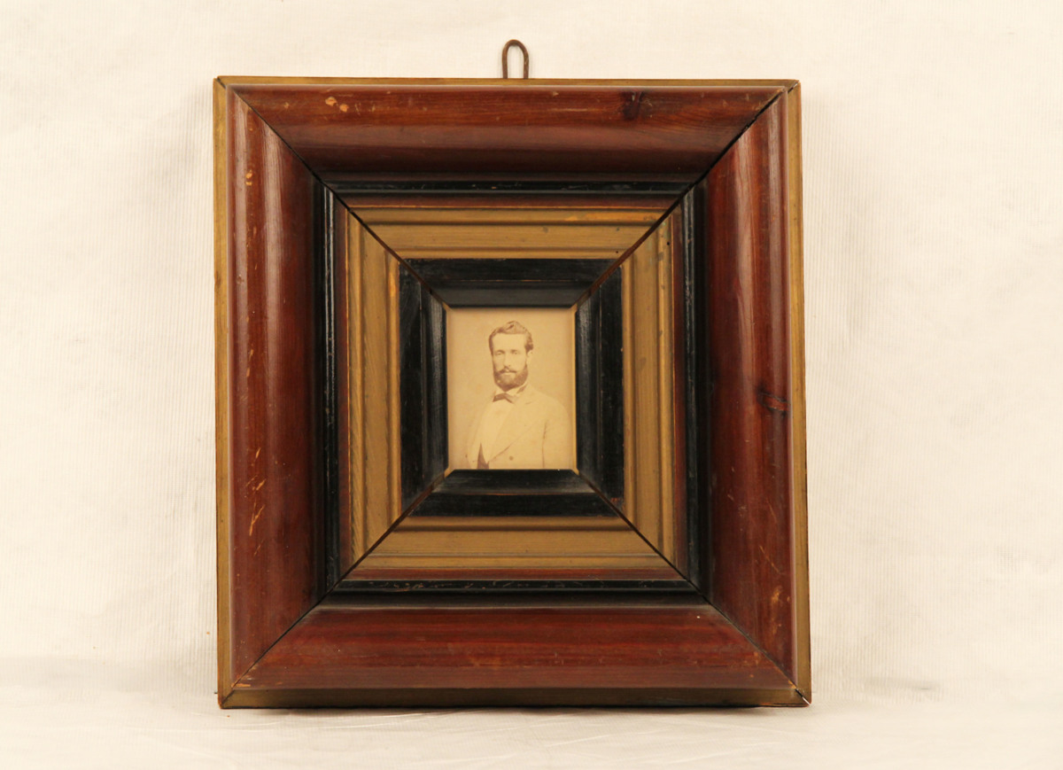 Brun färg med förgyllda inlägg. Ramen har tidigare (slutet av 1800-talet - 1910) hängt i kapten Elis Lindbergs hem, Vegagatan 8, Göteborg.