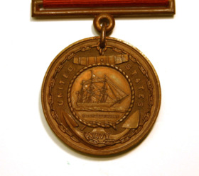 Medalj, amerikanska flottans medalj för plikttrogenhet, tjänstenit och lydnad.