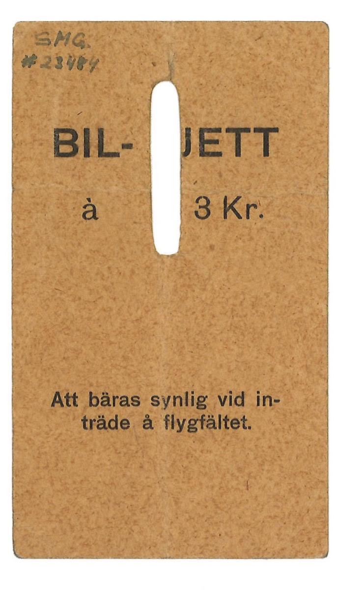 Biljett för åskådare till R. Cozics flygning vid Kvibergs hed år 1911.