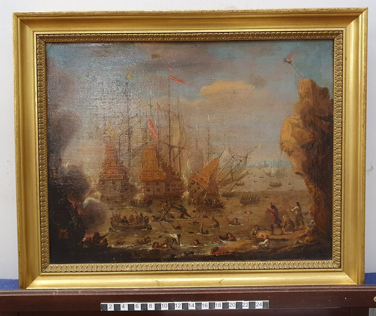 Gå tillbaka till sökLägg till i Min samlingKopiera länkSkriv utOljemålning, sjödrabbning på 1600-taletKategoriSjöslag och landstigningar (Konst)DateringFöreställande tid 1600-talMaterial och teknikoljaDimensionerGrundmått 43,50 x 52,00 cmInventarienummerSMG24612UtställdUtställd i Hav av historierRelaterade temanHav av historier - Faror till sjöss