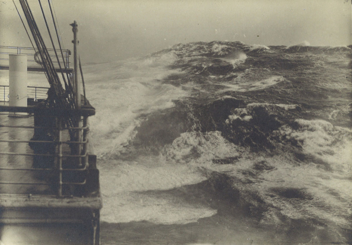 Påskrift: Storm på Atlanten. Fotografi taget Dec. 1912 av Railey från s/s Oceanic då min fru medföljde som passagerare