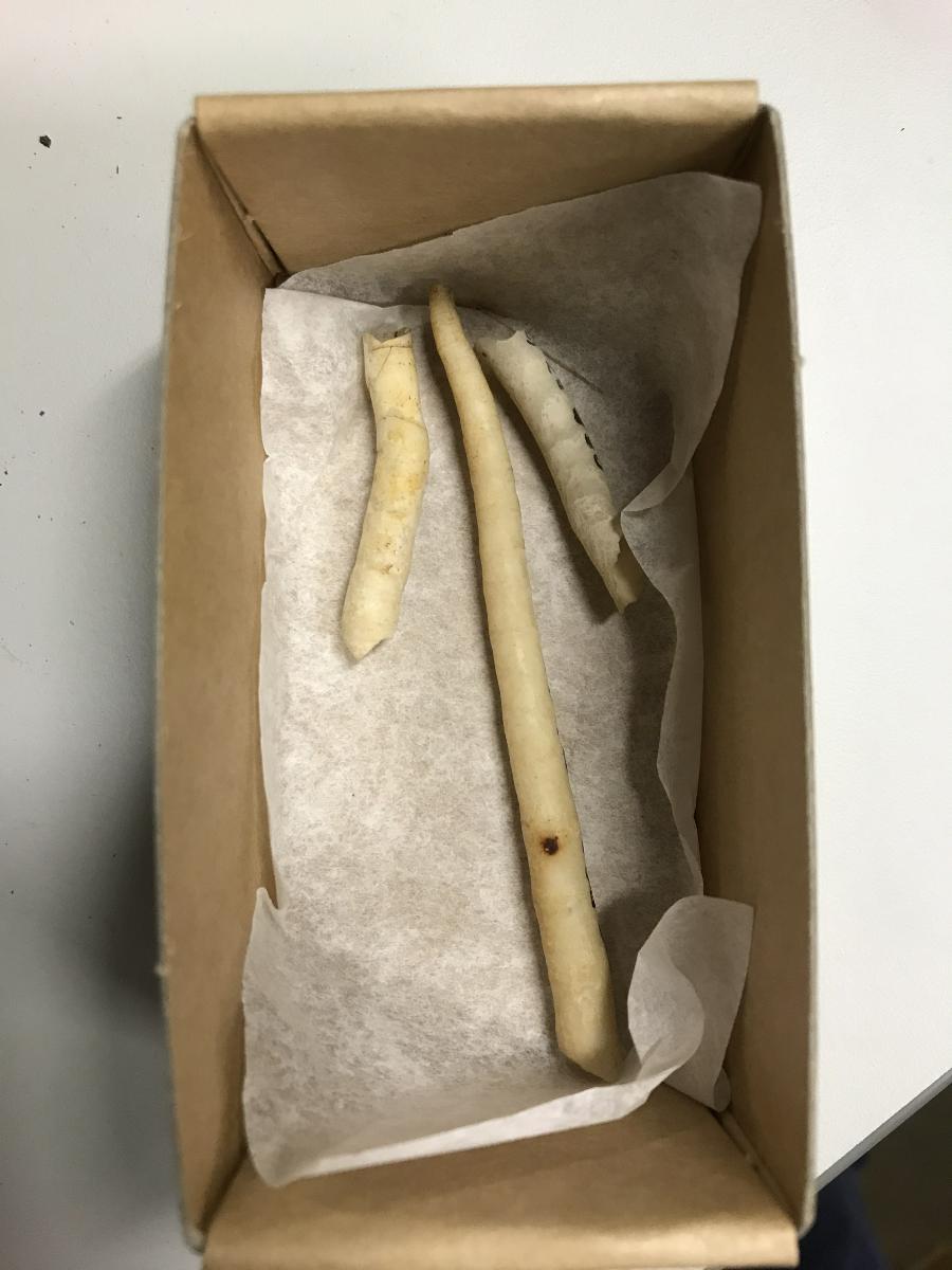 Som legat 5 års tid på havsbotten. Furubiten var Bolidenimpregnerad men trots detta har skepsmasken angripit densamma. I SMG25480 har pappersrullar isatts illustrerande skeppsmaskens kokonger.
