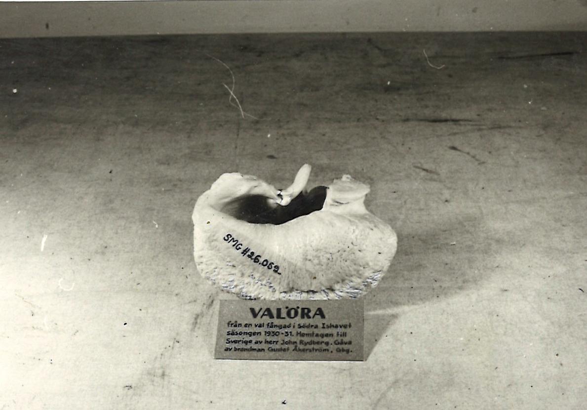 Valen fångad i södra Ishavet säsongen 1930-31.Hemtagen till Sverige av herr John Rydberg.