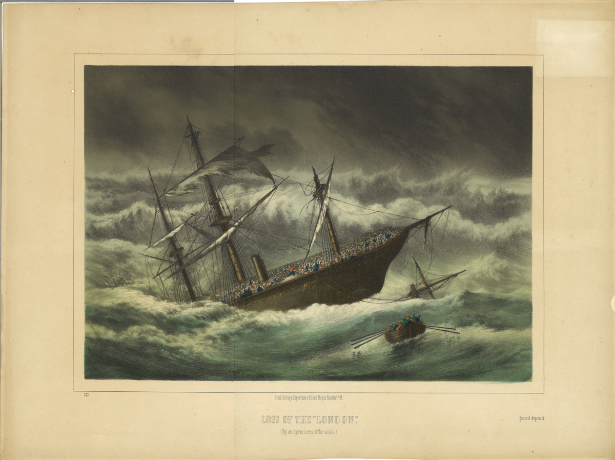 Föreställande ångaren LONDON:s undergång efter ett ögonvittnes beskrivning.