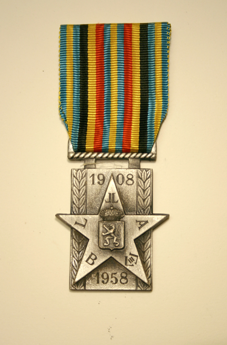 5-uddig stjärna med L.A.B samt två övriga tecken + årtal över (1908) och under (1958)