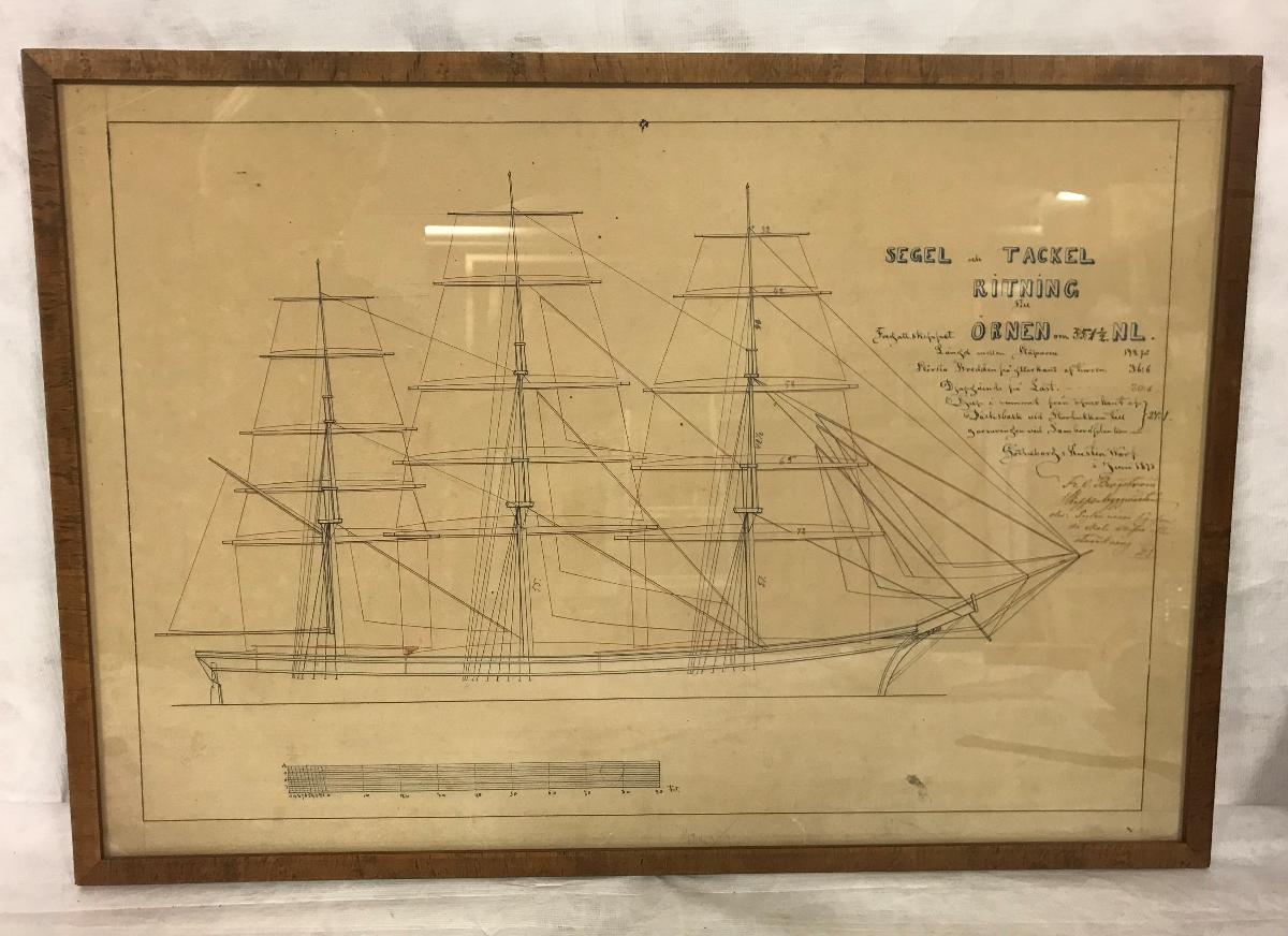 Segel och tackelritning till fregattskeppet Örnen