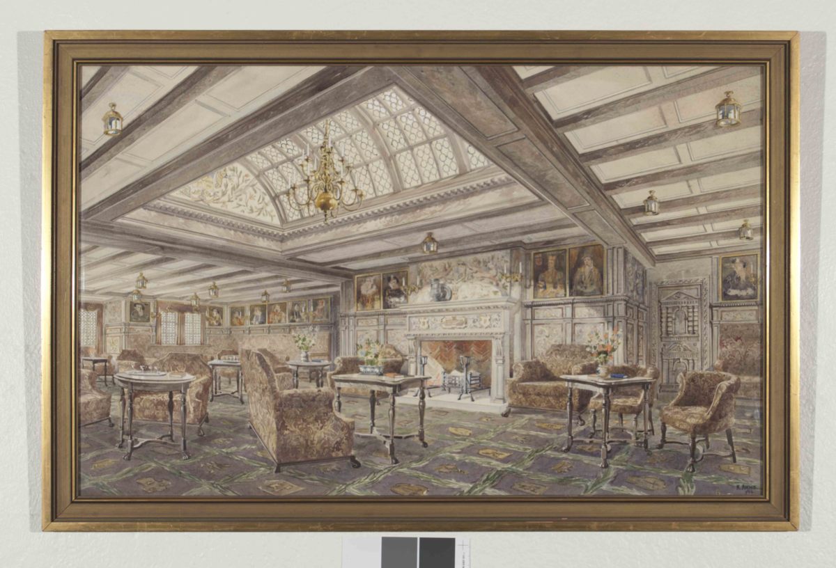Akvarellmålning, musik- och sällskapsrum i turistklass