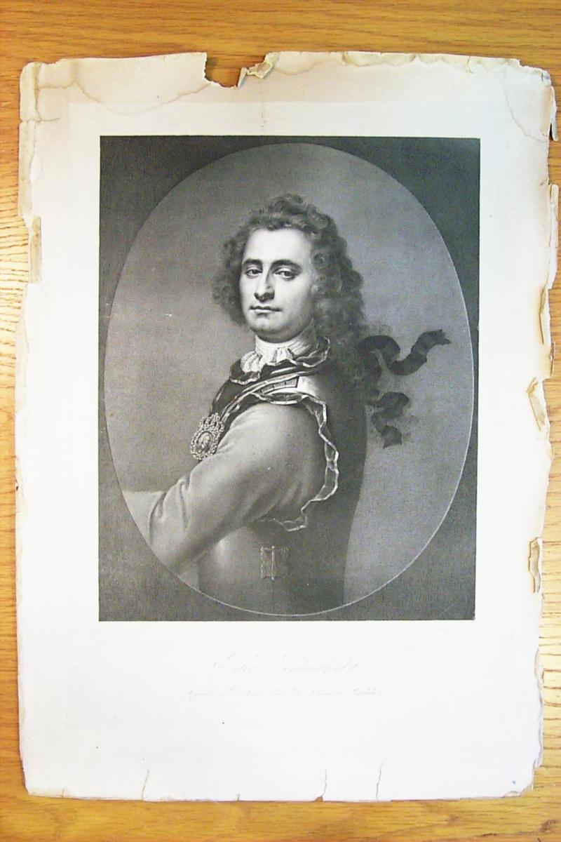 Svartvit litografi, efter färgad förlaga av den tyske porträttmålaren Balthasar Denner.