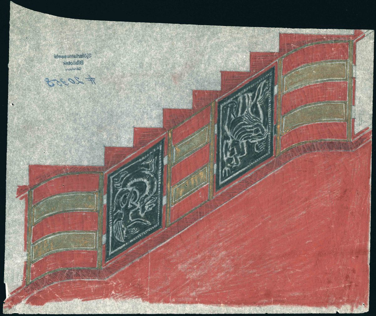 Interiörskiss, dekoration i trappa 1:a klass trapphus