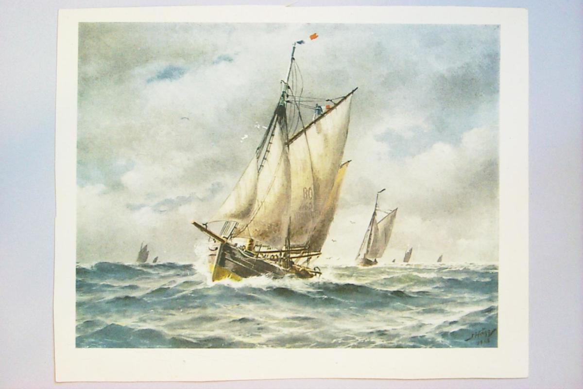 Färgtryck föreställande ett fransktfiskefartyg i Nordsjön