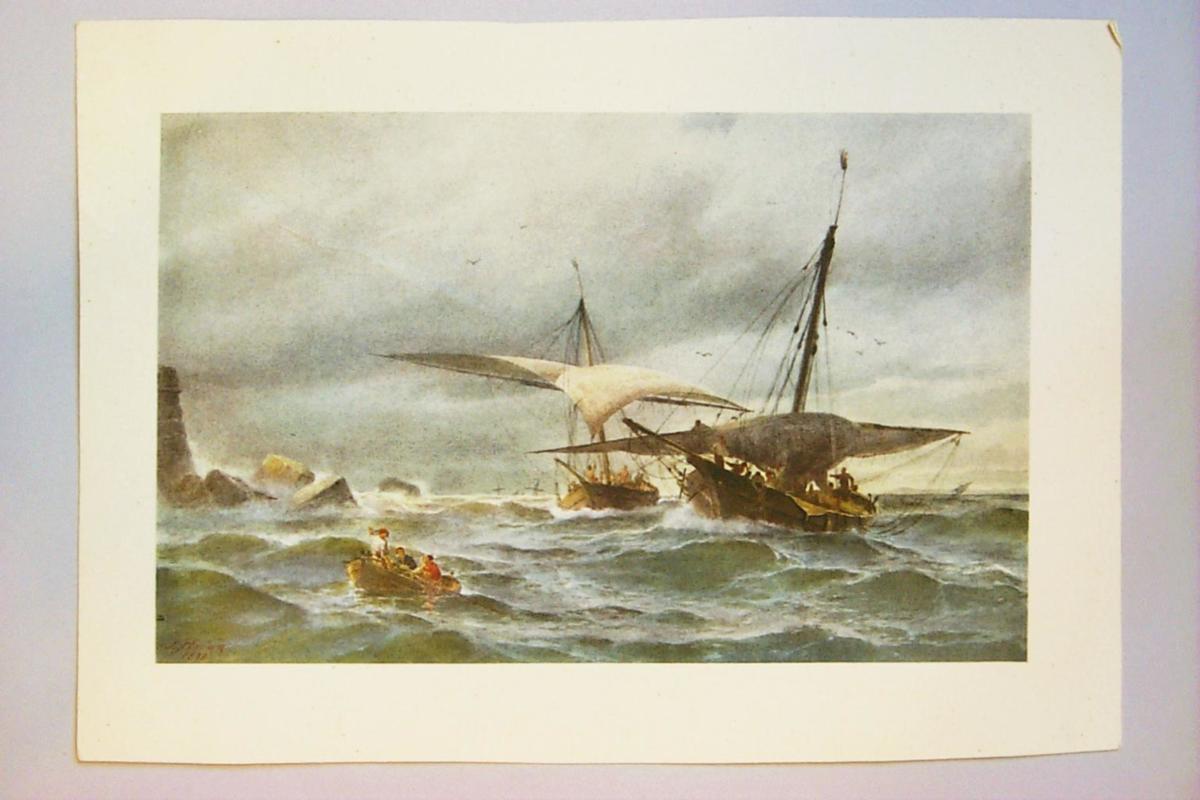 Fiskefartyg av modifierad tartane-typ söka hamn i Alger för annalkande oväder. Efter akvarell 1878 av J. Hägg. Tryck från E. Hägg: Under segel sidan 127.