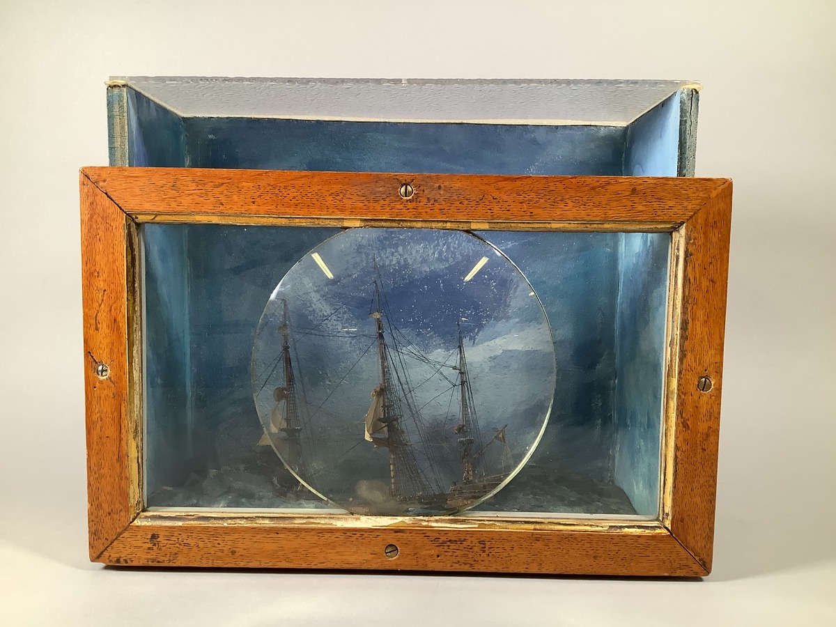 Vattenlinjemodell i tittskåp av ostindiefararen GÖTHEBORG II