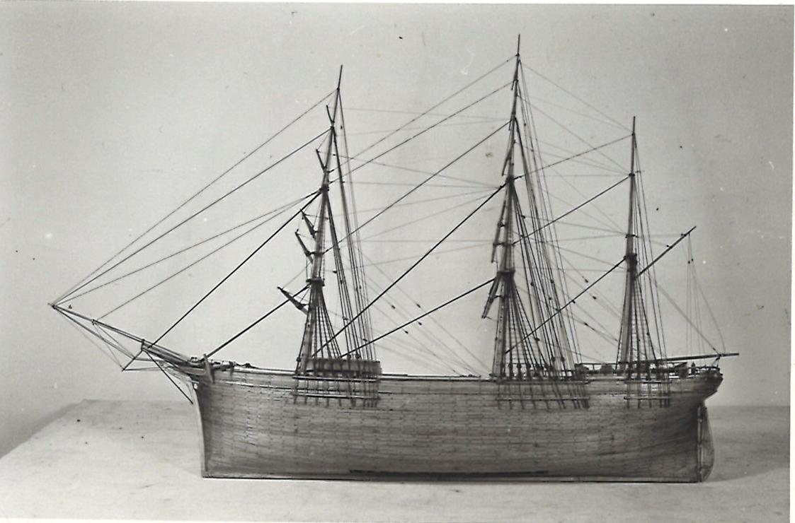 Modell med monter. Tillverkad av Hugo Eiserman under jorden-runt-resa med dottern Hilma åren 1880-81. Hugo lovade att den av hans barn som först gifte sig skulle få modellen. Han trodde det skulle bli äldsta dottern Hilma men tredje dottern Hulda kom först då hon gifte sig 1896. De båda äldre systrarna gifte sig året efter, 1897.