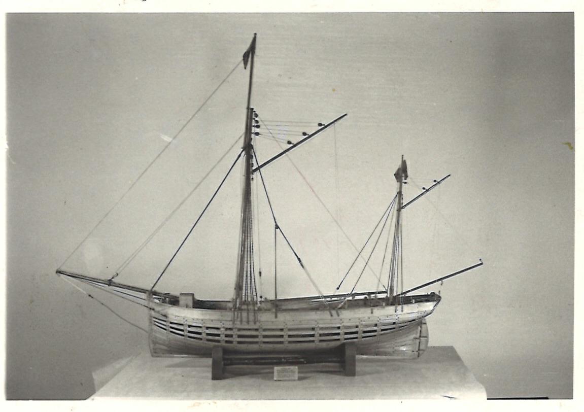 Modell av fiskekutter, inköpt från Holland år 1913. Skrov genombrutet, omålat