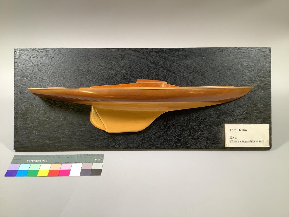 Halvmodell av ELVA, Ruffad 22/m skärgårdskryssare.