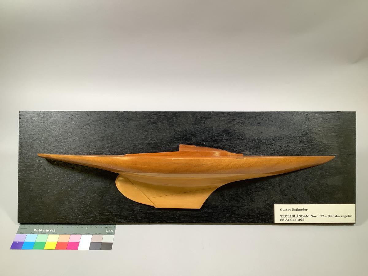 Halvmodell av Nord, 22:a TROLLSLÄNDAN monterad på svart träplatta. Konstruktör: Gust. Estlander.