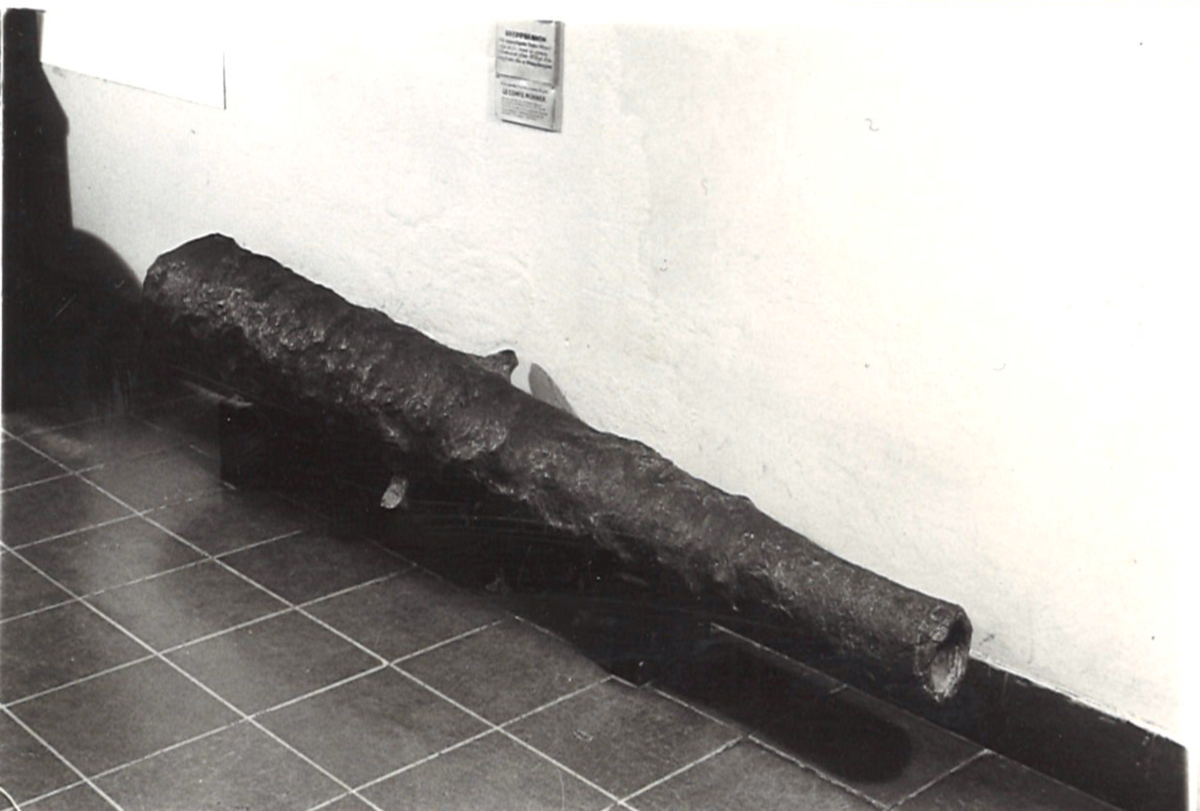 Skeppskanon från kaparfregatten Grefwe Mörner, som stacks i brand av amiral P. Tordenskiold hösten 1719 på Älvsborgsfjorden.