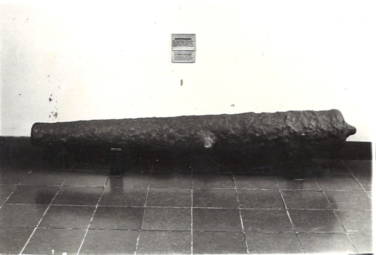 Skeppskanon från kaparfregatten Grefwe Mörner, som stacks i brand av amiral P.Tordenskiold hösten 1719 på Älvsborgsfjorden.