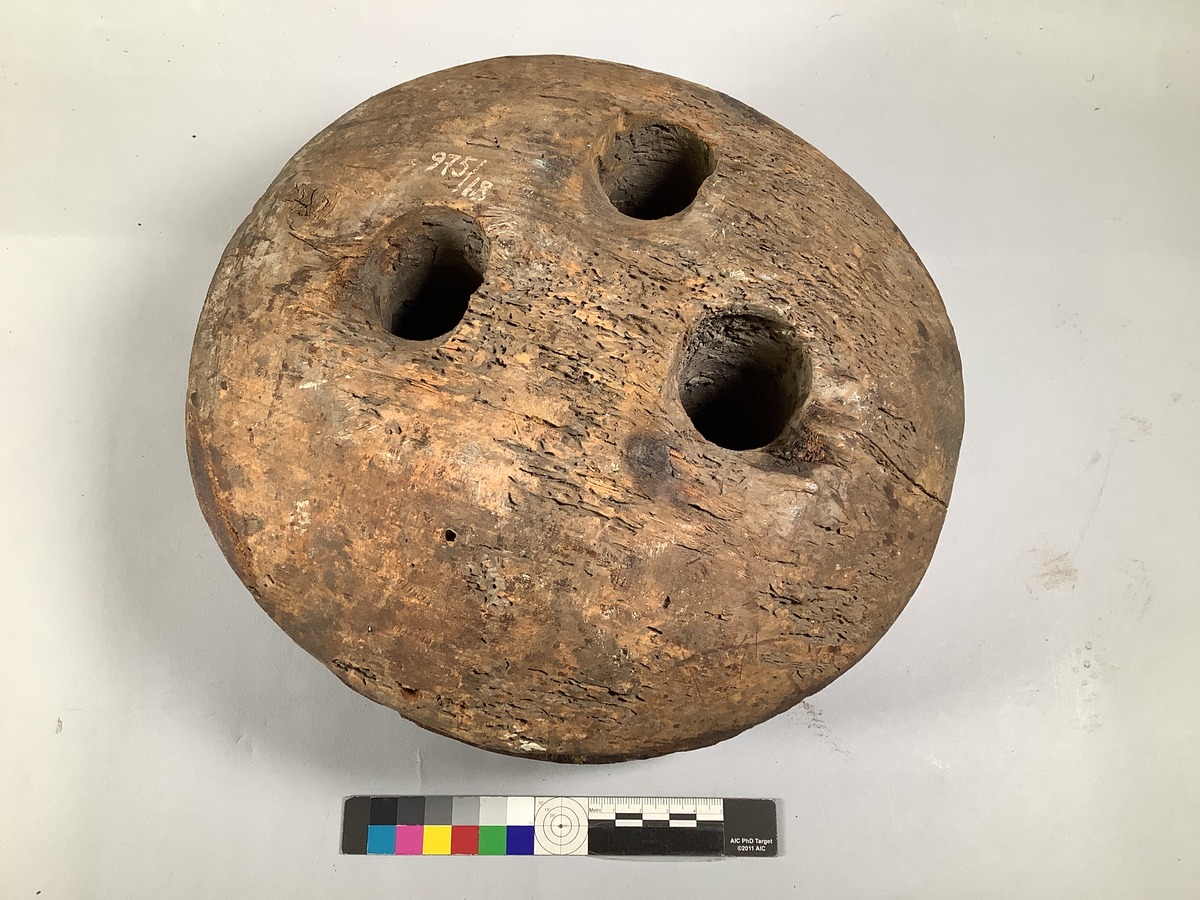 Jungfru, 10 tums, med rest av taljerep från kaparefregatten GREFWE MÖRNER.