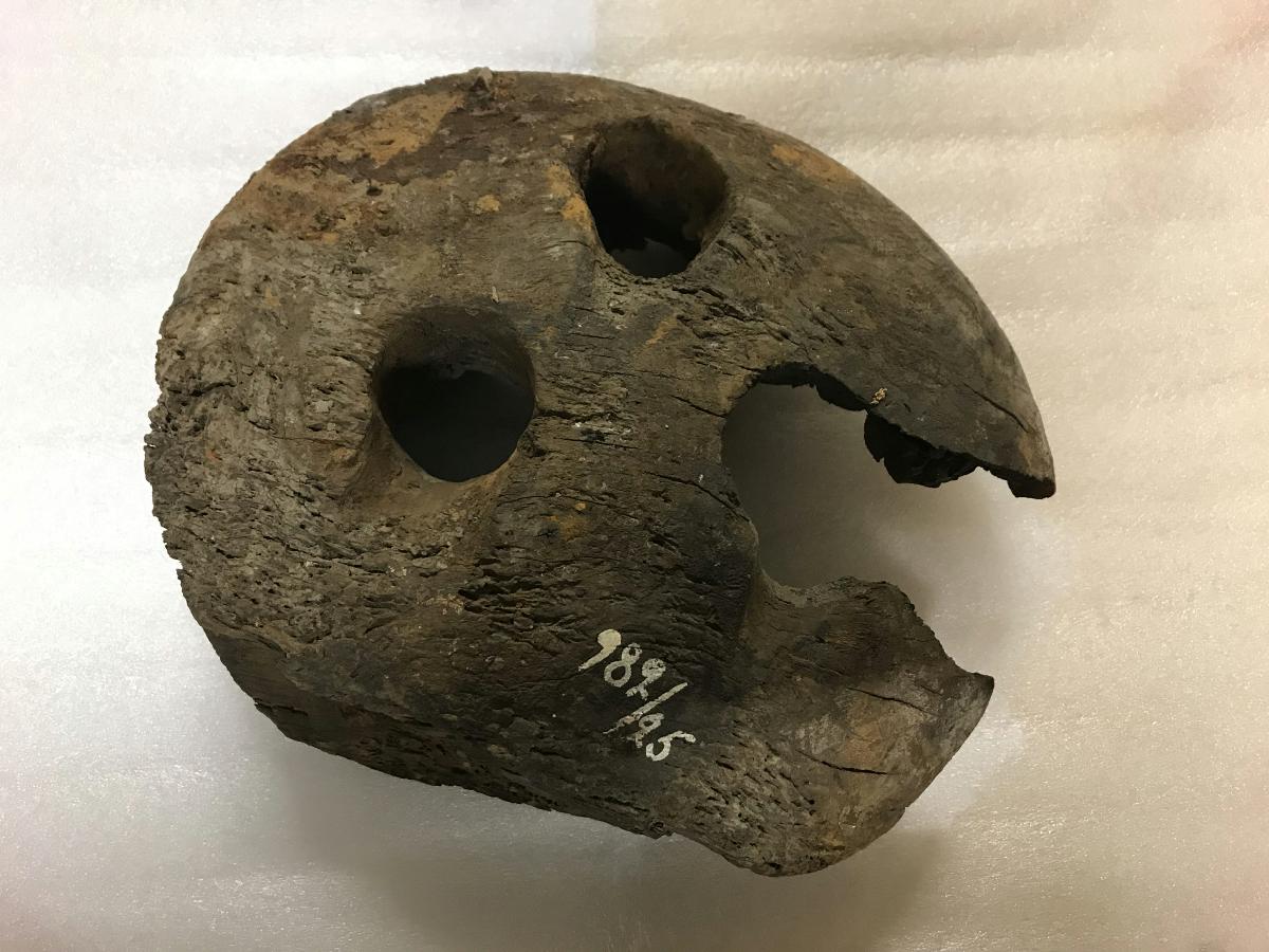 Jungfru, 9 tums, från kaparefregatten GREFWE MÖRNER. Brandskadad.