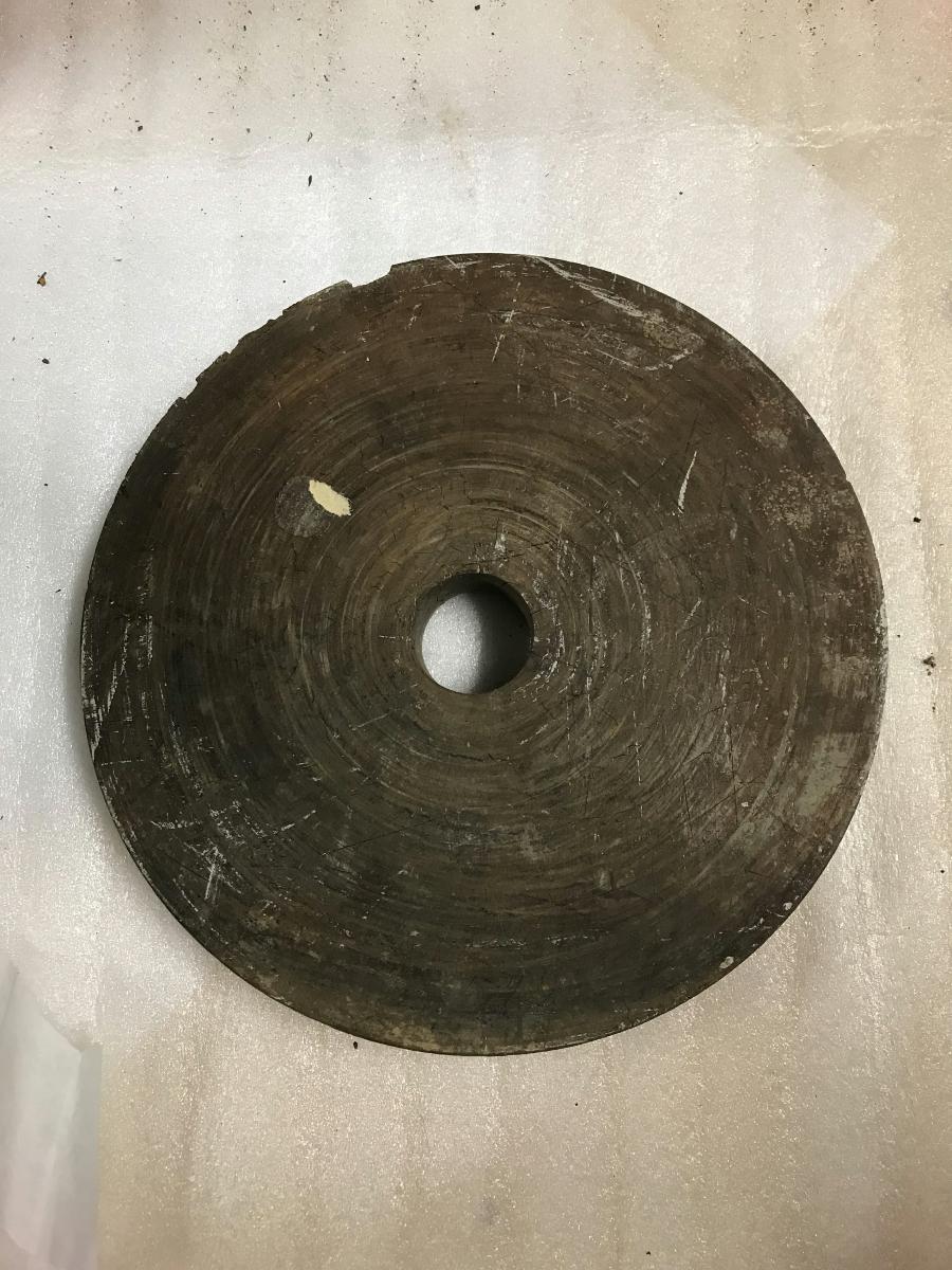 Blockskiva, 9 tums, från Ostindiska Compagniets skepp GÖTHEBORG.