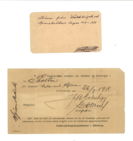 Tillståndsbevis och anhållan om tillstånd från första världskriget.