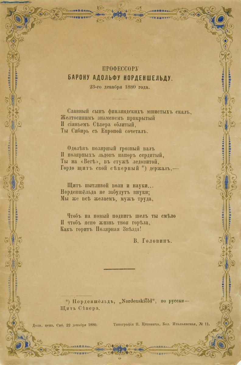 Gå tillbaka till sökLägg till i Min samlingKopiera länkSkriv utHyllningsadress på ryskaAktörerAdolf Erik Nordenskiöld (1832 - 1901), BrukareKategoriVegaexpeditionen (Expeditioner och forskning) hyllningsadress (Dokument, handlingar)DateringTillkomsttid 22-23 dec 1880InventarienummerSMG2623UtställdUtställd i Hav av historierBeskrivningHyllningsadress på ryska till Nordenskiöld, daterad 22-23 december 1880Relaterade temanHav av historier - Expeditioner på världshaven